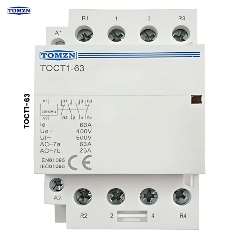 The TOMZN AC Changeover Switch provides seamless switching between two power sources such as grid and generator. Available in 2-pole and 4-pole variants, it ensures reliable and safe transfer operations.